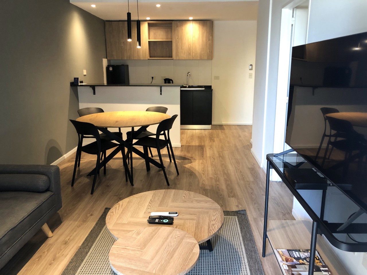 Exclusivo departamento de 2 ambientes de amplias dimensiones, con luminosidad natural, equipado por completo con muebles de la distinguida marca internacional Wilson Tobal, y decorado con detalles de categoría. Dispone de living comedor con ventanales y salida a balcón, con vista privilegiada al Estadio Boca Juniors. Cocina integrada con mueble bajo mesada y alacena. Un dormitorio en suite con vestidor. Un baño completo (en suite) y un toilette. Cuenta con aire acondicionado frío-calor tanto en living comedor como en el dormitorio.