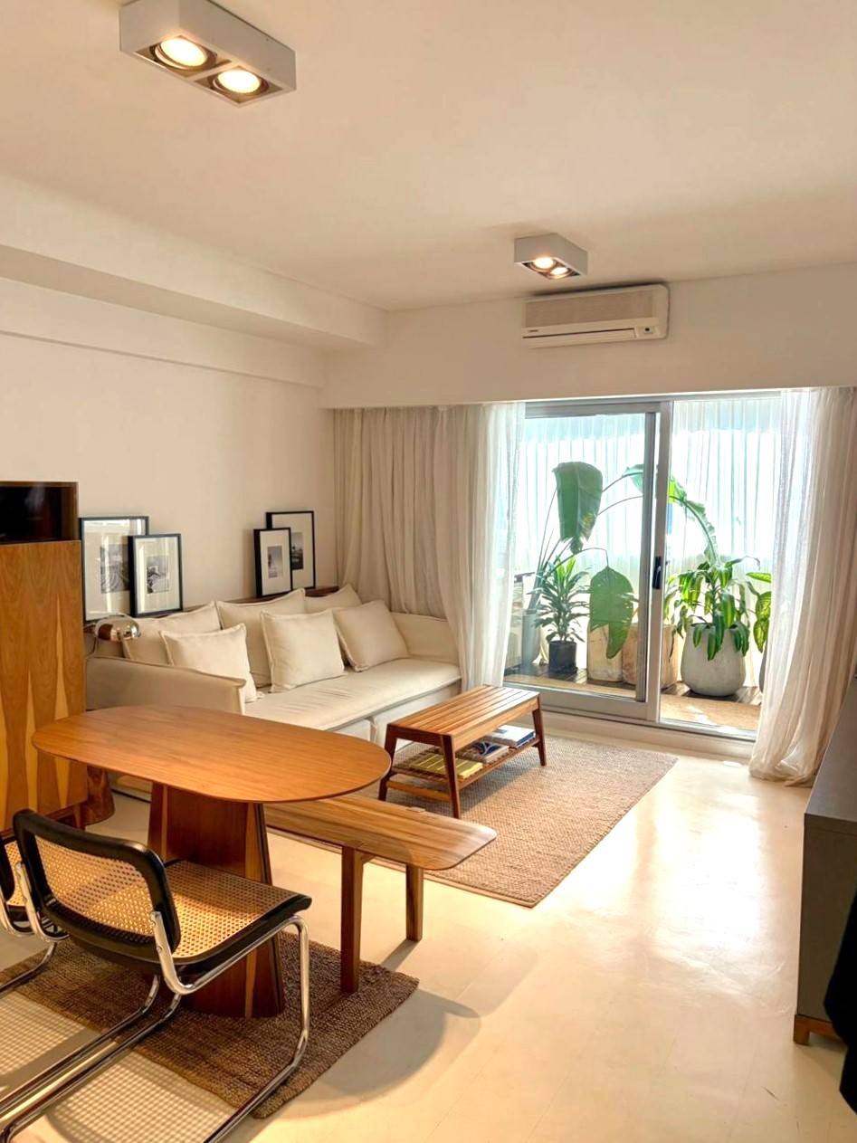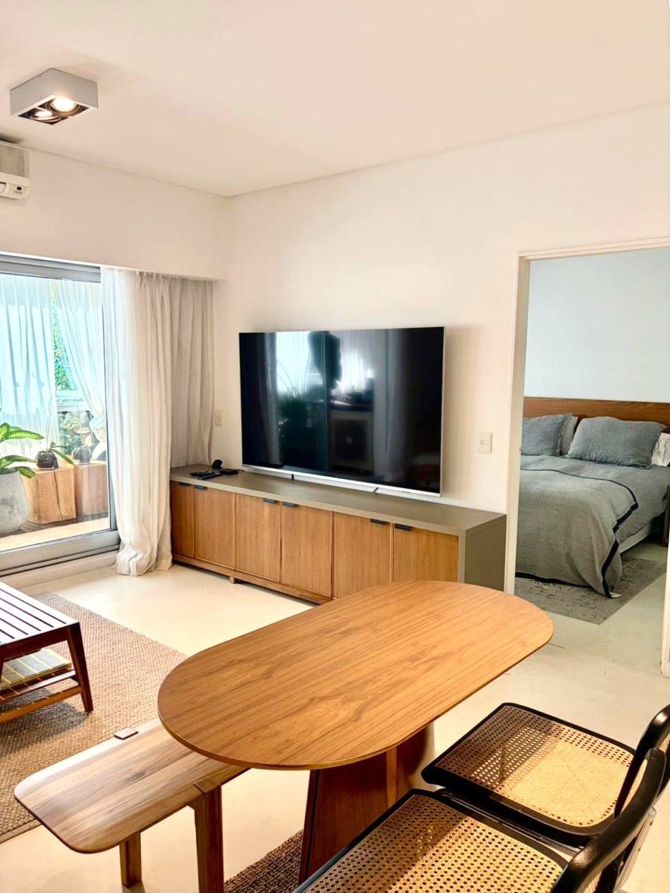 Excelente departamento de 2 ambientes, amoblado por completo, con cochera en BA Houses. Dispone de amplio living comedor con salida a balcón y vista a la calle Olga Cossettini. Cocina integrada, con mueble bajo mesada, alacena y espacio de guardado. Un dormitorio, también con salida a balcón. Un baño completo. La propiedad es apto profesional y cuenta con una cochera.