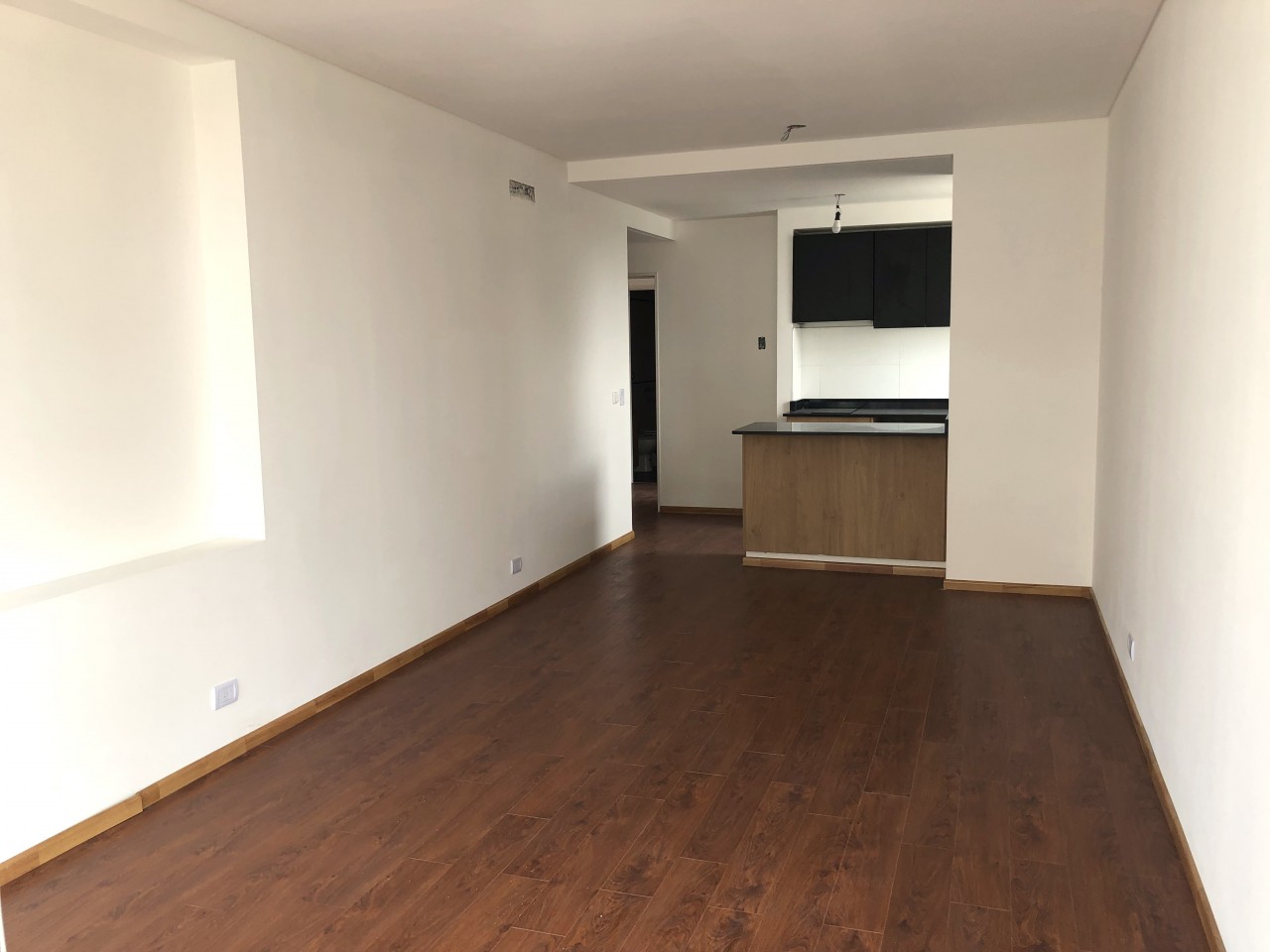 Excelente departamento de 2 ambientes al frente, a estrenar. Amplio living comedor con salida a balcón, que le aporta luminosidad natural y muy buena circulación de aire. Cocina integrada con mueble bajo mesada, alacena, anafe y horno eléctrico. Un dormitorio en suite con espacioso placard y balcón. Un toilette y un baño completo (en suite).
