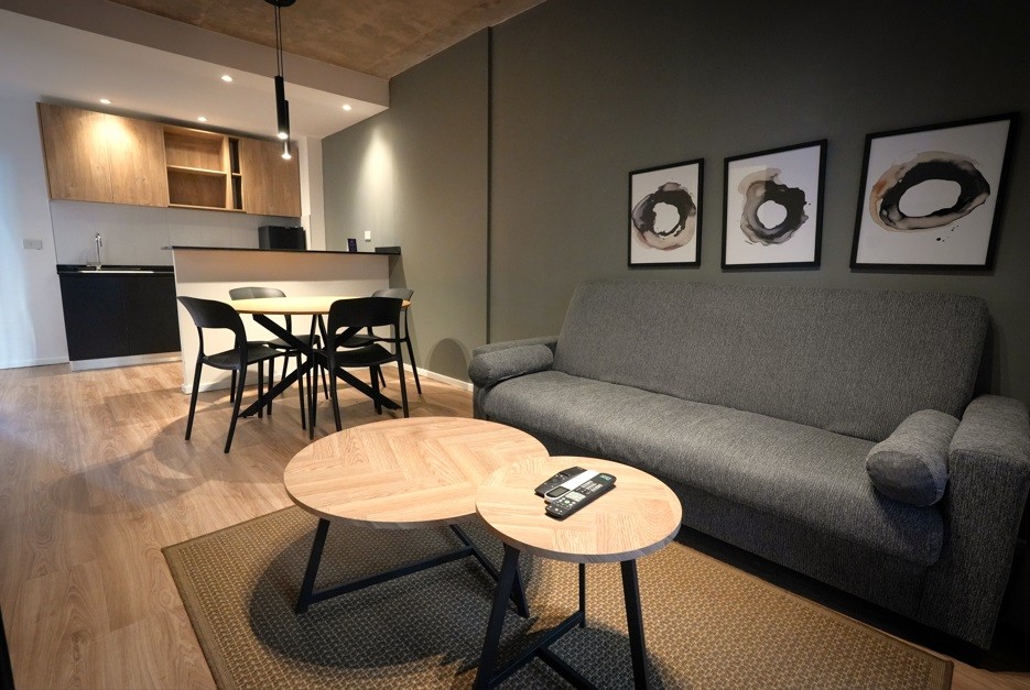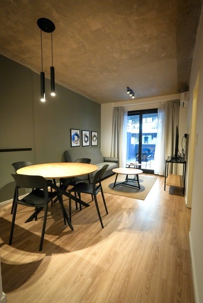 Exclusivo departamento de 2 ambientes de amplias dimensiones, equipado por completo con muebles de la distinguida marca internacional Wilson Tobal, y decorado con detalles de categoría. Dispone de living comedor con ventanales y salida a patio propio, lo que le aporta muy buena circulación de aire. Cocina integrada con mueble bajo mesada y alacena; barra desayunador. Un dormitorio en suite con ventanal. Un baño completo (en suite) y un toilette. Cuenta con aire acondicionado frío-calor. Cochera opcional.