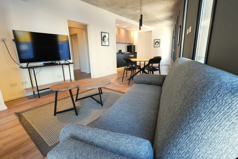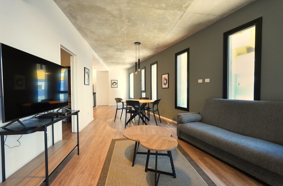 Exclusivo departamento de 2 ambientes de amplias dimensiones, equipado por completo con muebles de la distinguida marca internacional Wilson Tobal, y decorado con detalles de categoría. Dispone de living comedor con ventanales y patio propio, lo que le aporta luminosidad natural y muy buena circulación de aire. Cocina integrada con mueble bajo mesada y alacena. Un dormitorio en suite con salida a patio. Un baño completo (en suite) y un toilette. Cuenta con aire acondicionado frío-calor. Consultar por cochera.