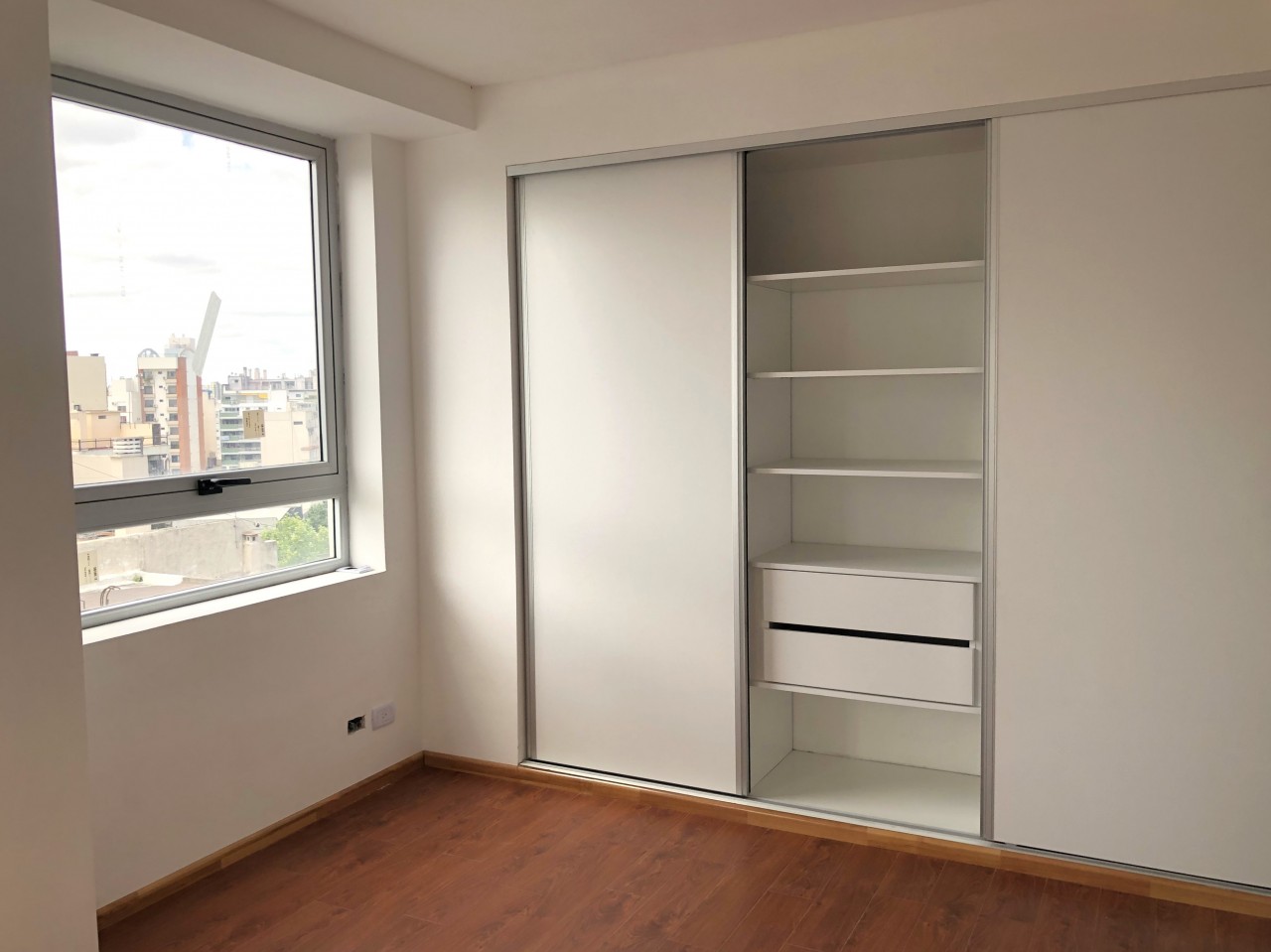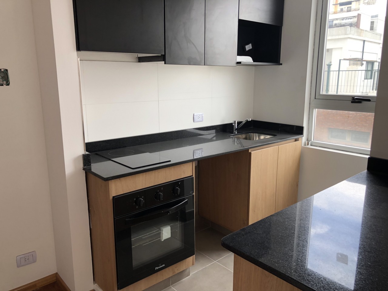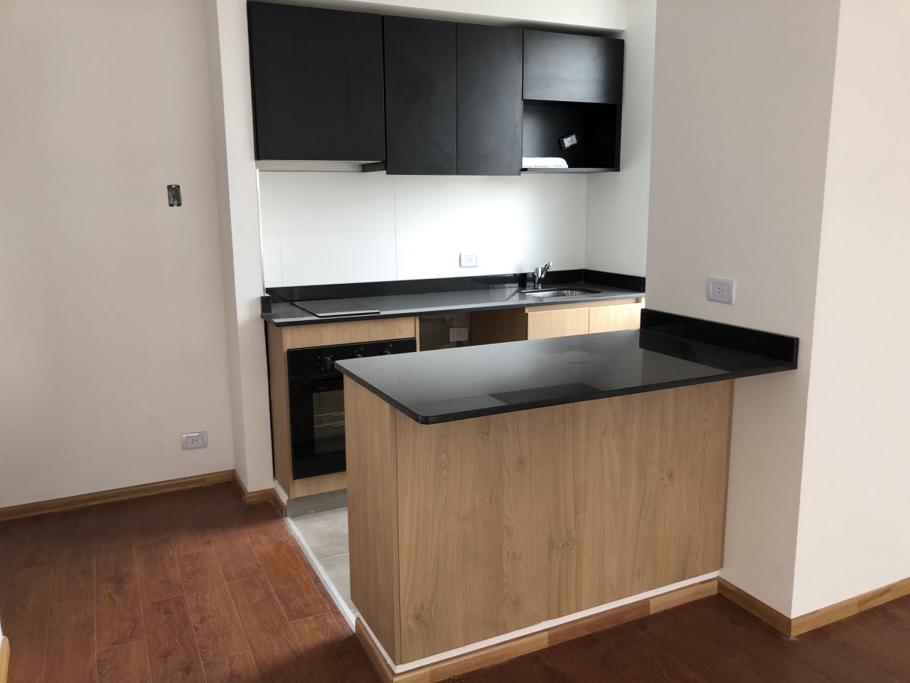 Excelente departamento de 2 ambientes al frente, a estrenar. Amplio living comedor con salida a balcón, que le aporta luminosidad natural y muy buena circulación de aire. Cocina integrada con mueble bajo mesada, alacena, anafe y horno eléctrico. Un dormitorio en suite con espacioso placard y balcón. Un toilette y un baño completo (en suite).
